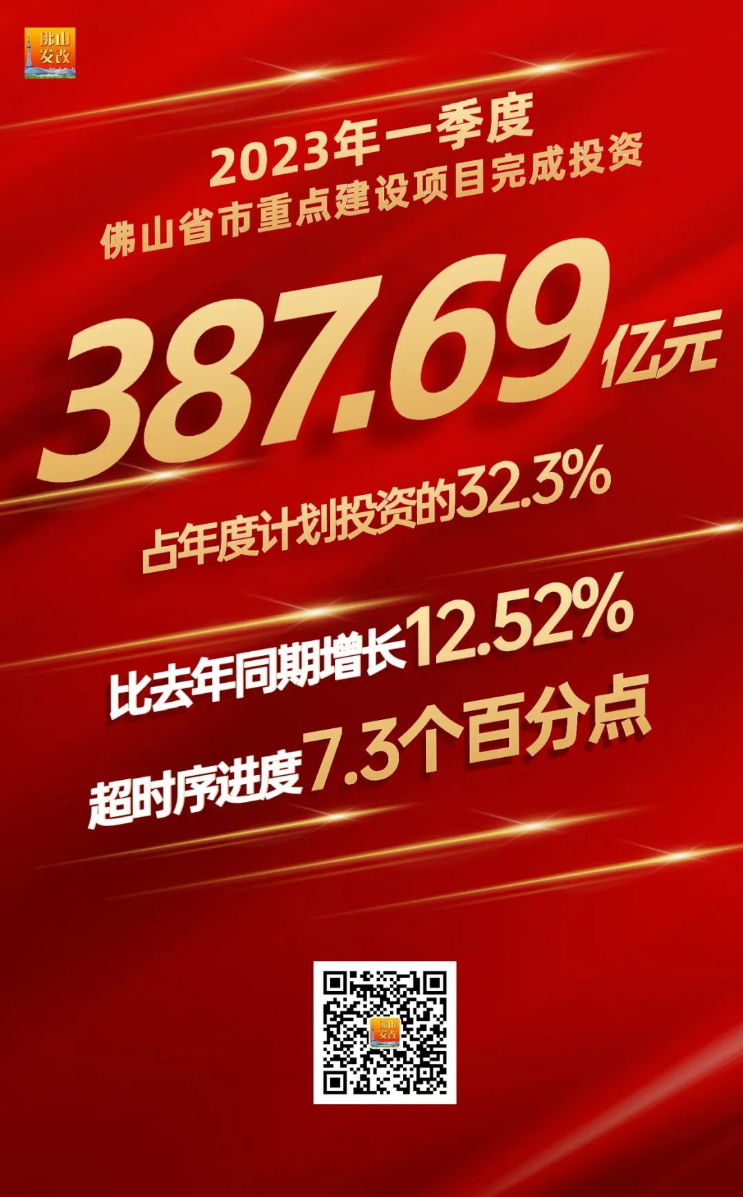 开局之年蹄疾步稳,项目建设只争朝夕。一季度,佛山省市重点建设项目完成投资387.69亿元,占年度计划投资的32.3%,比去年同期增长12.52%,超过时序进度7.3个百分点,各领域项目投资迎来“开门红”。