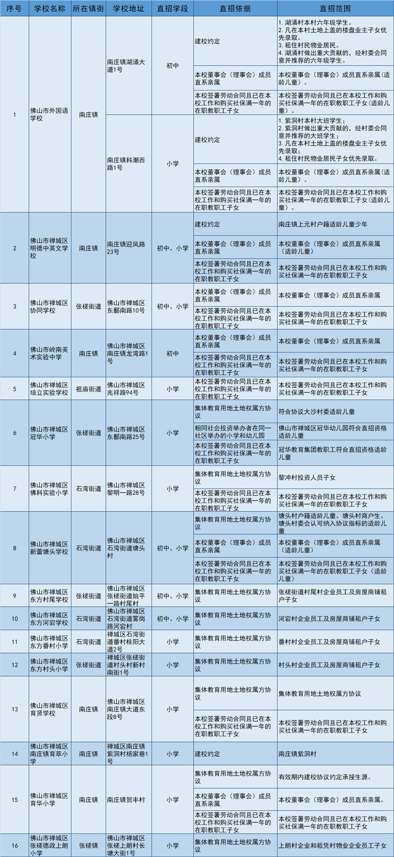 除上表列出的外,各学校按照政策规定及实际情况,可将“本校董事会(理事会)成员直系亲属”“本校签署劳动合同且已在本校工作和购买社保满一年的在职教职工子女”列入协议直招范围。