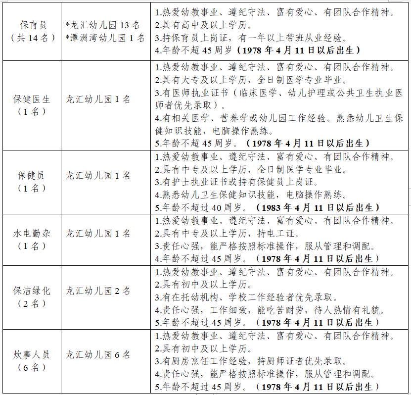 个人报名和资格审查——笔试(保育员、水电勤杂、保洁绿化、炊事人员不参加)——面试——体检——拟聘人员公示——聘用。