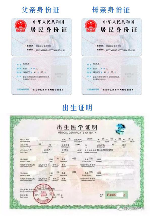 (2)父母资料:双方户口簿和身份证的原件及复印件。