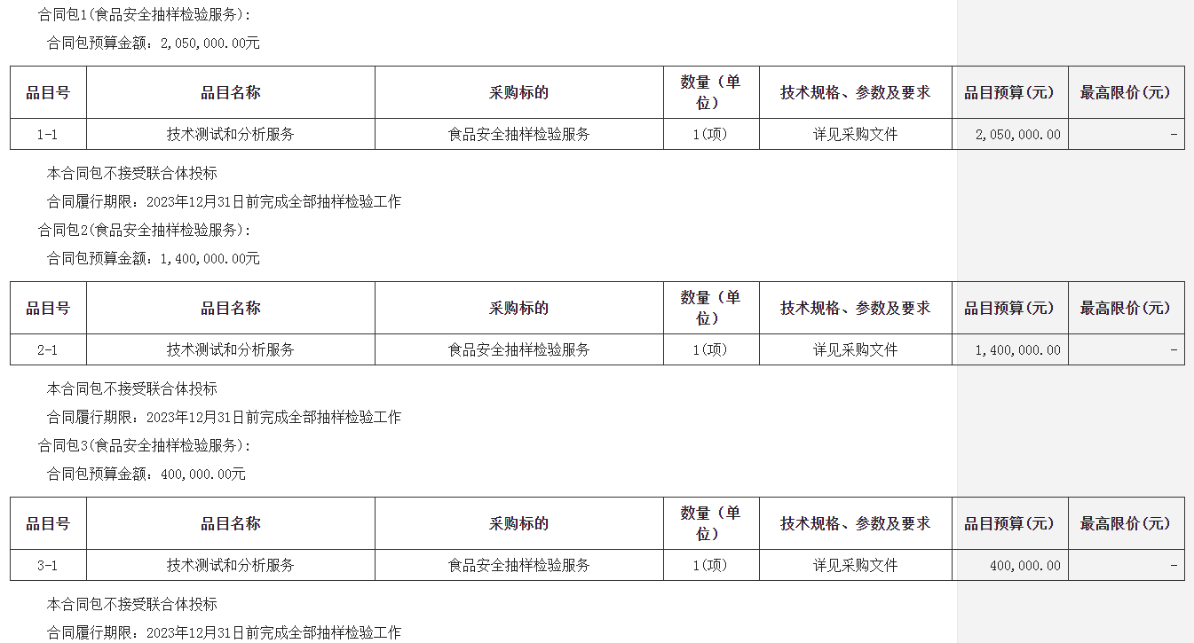 佛山市市场监督管理局2023年食品抽检监测服务招标公告