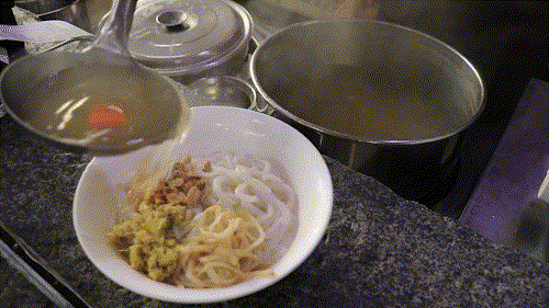 爽滑柔韧的粉条,辅以口味丰富的配料,加上一勺用骨头等慢火细熬的清汤,一碗香气四溢的高明濑粉上桌了。从选大米,还要将米磨成粉,筛粉、晒粉,最后到用粉做成濑粉,濑粉的制作工序繁多且耗时。但正因为选材精致,工艺纯熟,手艺人的匠心,造就了高明濑粉的上佳品质。