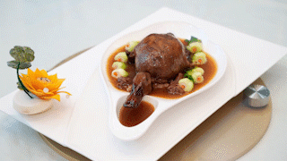 霸王鸭总共有十三道工序,最麻烦的是拆骨,一只鸭,要将胸腔内鸭骨去尽而丝毫不弄破鸭身,还要酿馅、扎鸭、汆水、上色、油炸、淋高汤、蒸焗……这不仅考究厨师丰富的料理经验,而且需要精准的火候把控能力,少点耐性与细心都无法完成。