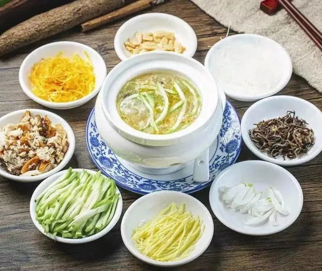 拆鱼羹是顺德地区经典菜式之一,丝丝分明的鱼茸和丰富的鲜蔬,配上菊花瓣增香添色,鲜味馥郁,更有汤的清润营养的功能。