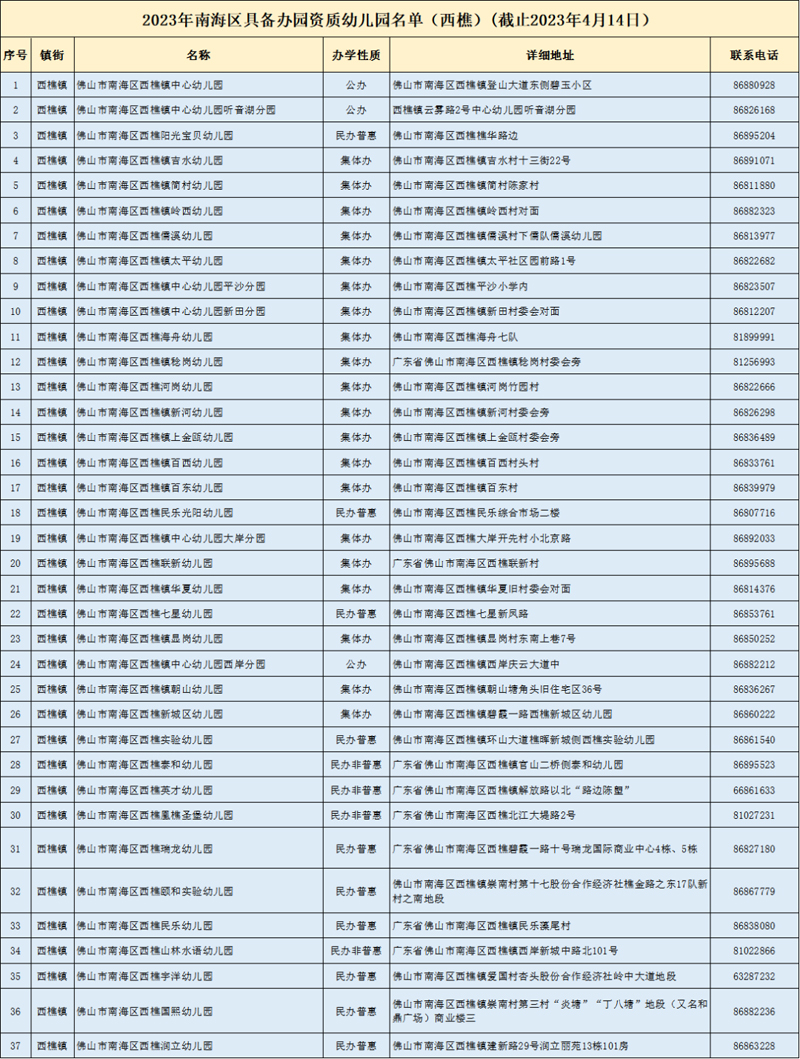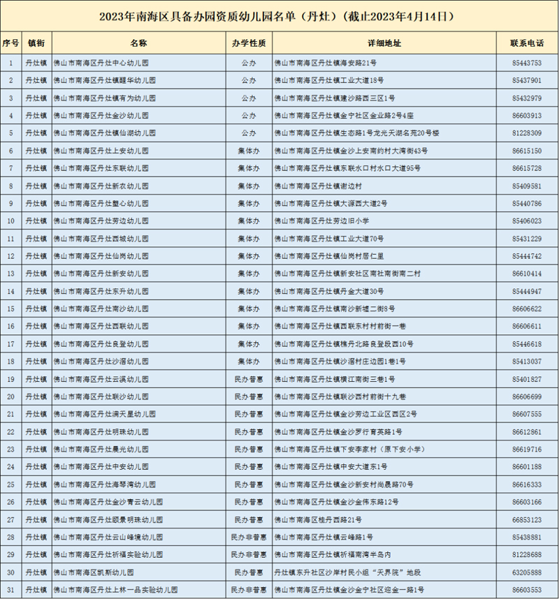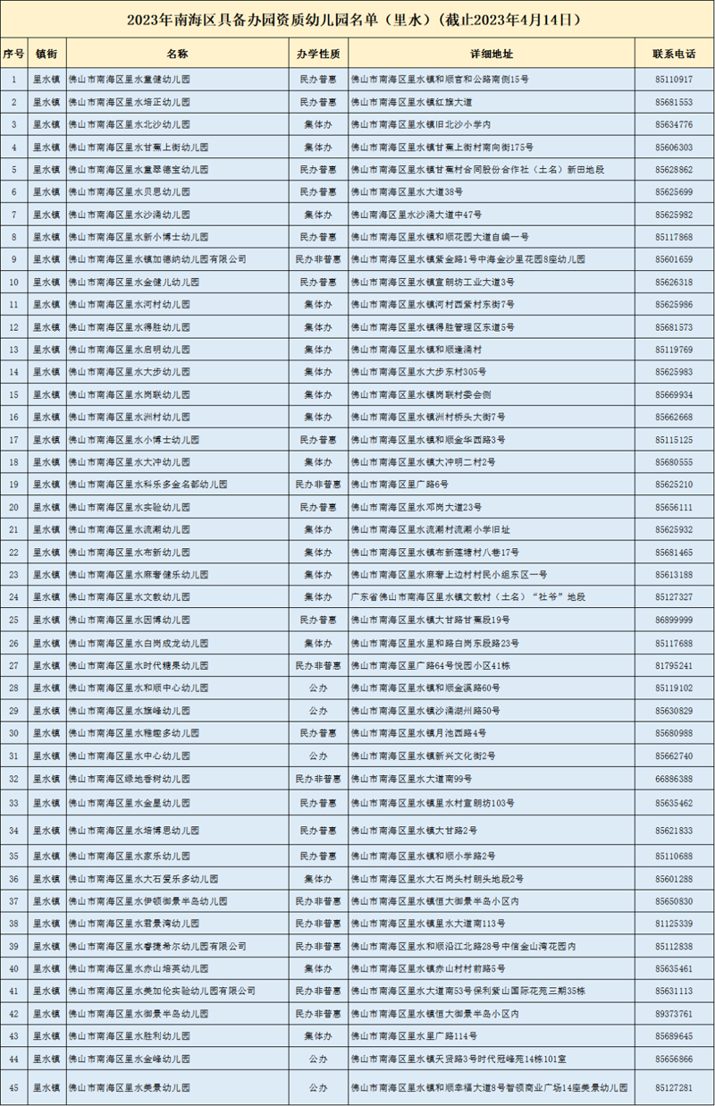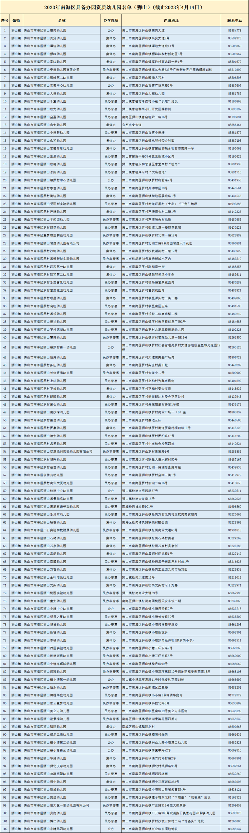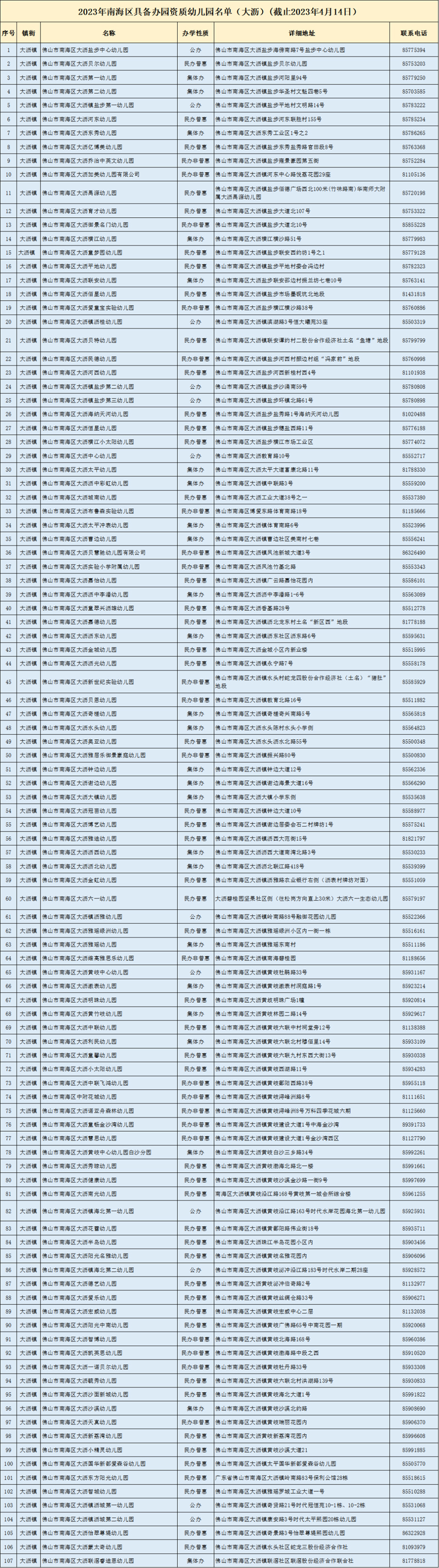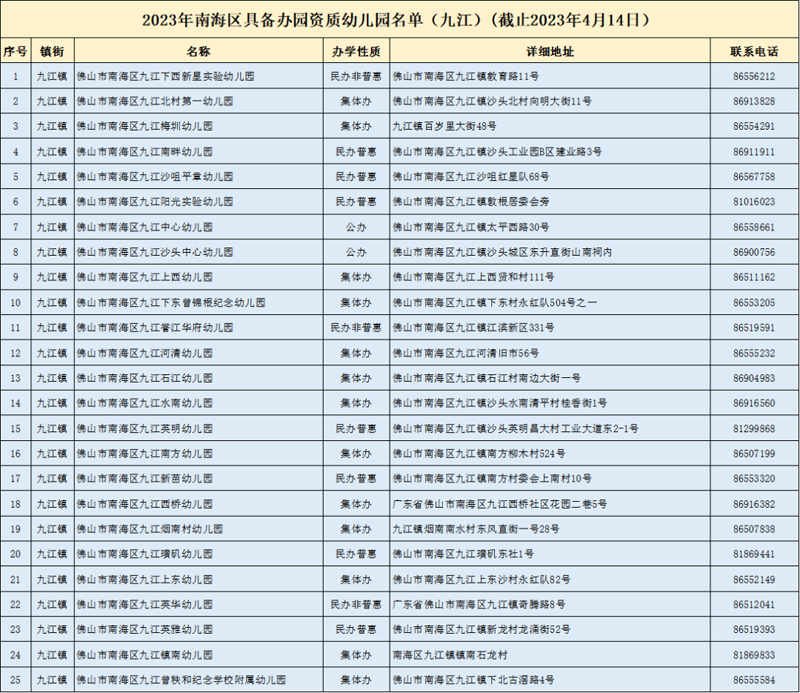 近日,南海区教育局公布了《2023年南海区具备办园资质幼儿园名单》,截至4月14日,南海区具备办园资质幼儿园共433所。其中,九江镇幼儿园数量为25所。