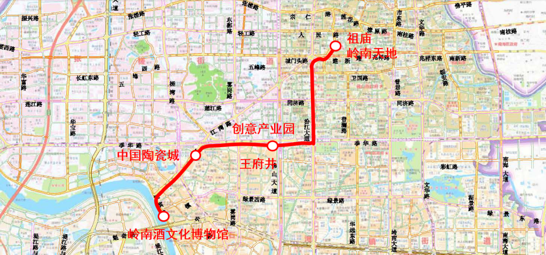 (2)停靠站点:岭南酒文化博物馆公交首末站、柏林艺术馆、陶都、石湾公园、中国陶瓷城、陶瓷展览中心、创意产业园、季华四路东、同济路口、城门头南、祖庙A站。