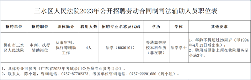 三水法院向社会公开招聘4名劳动合同制司法辅助人员