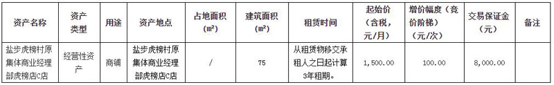 南海区大沥镇盐步虎榜村原集体商业经理部虎榜店C店网上租赁竞投公告