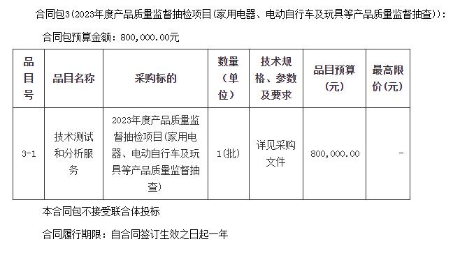 合同包3(2023年度产品质量监督抽检项目(家用电器、电动自行车及玩具等产品质量监督抽查))特定资格要求如下: