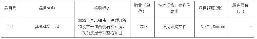 项目名称:2023年杏坛镇违章建(构)筑物及主干道两侧石棉瓦房、铁锈皮屋专项整治项目