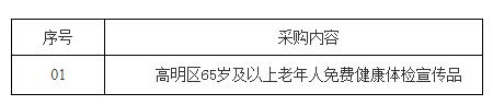 1、标的名称:高明区65岁及以上老年人免费健康体检宣传品