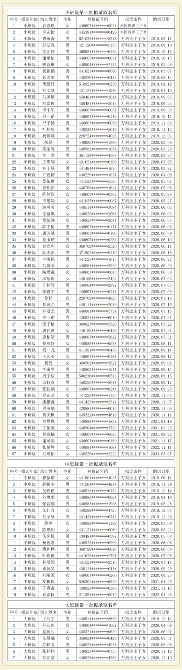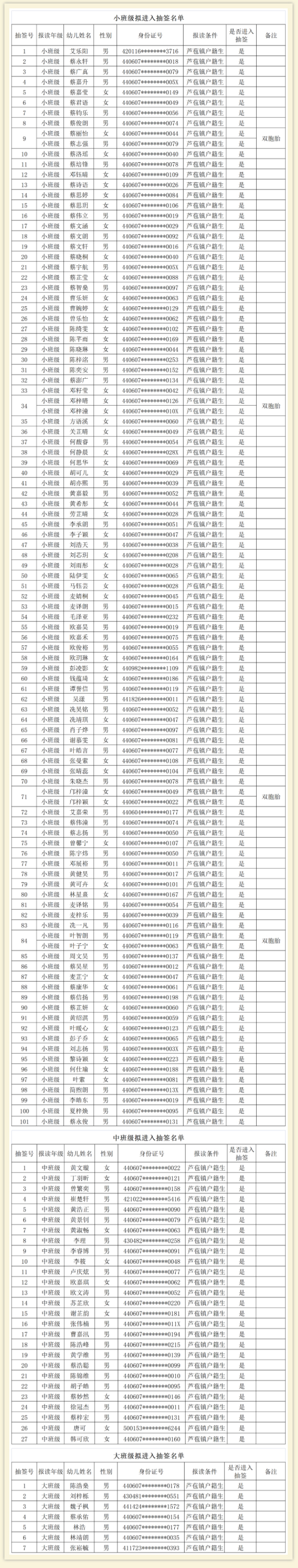 三水芦苞镇中心幼儿园2023年秋季招生第一批录取名单及进入抽签幼儿名单