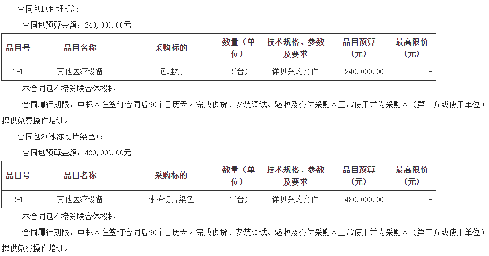 合同包1(包埋机)落实政府采购政策需满足的资格要求如下: