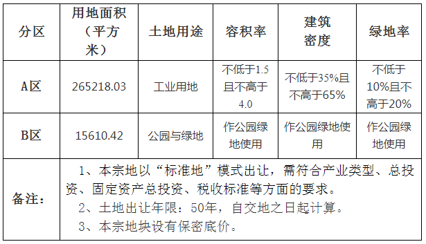 交易编号:TD2023(SD)WG0022;宗地图号:152397-001;地块位置:佛山市顺德区龙江镇新产业区SD-G-01-01-05-03、04地块;土地面积:280828.45平方米,根据顺规条件(2023)0046号《佛山市顺德区建设用地规划条件》的分区,各分区的用地面积和规划指标详见下表: