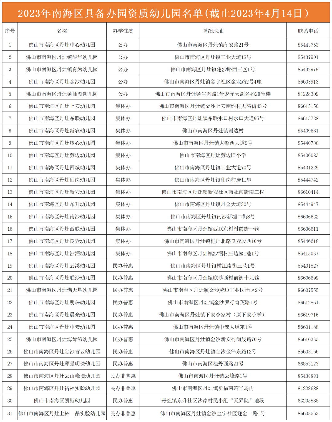 近日,南海区教育局公布了《2023年南海区具备办园资质幼儿园名单》,截至4月14日,南海区具备办园资质幼儿园共433所,其中丹灶镇有31所。