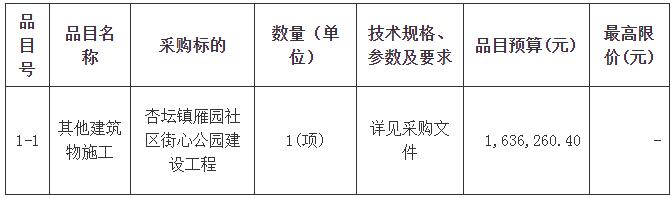合同包1(杏坛镇雁园社区街心公园建设工程):
