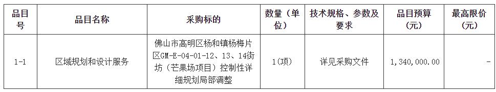 合同包1(佛山市高明区杨和镇杨梅片区GM-E-04-01-12、13、14街坊(芒果场项目)控制性详细规划局部调整):