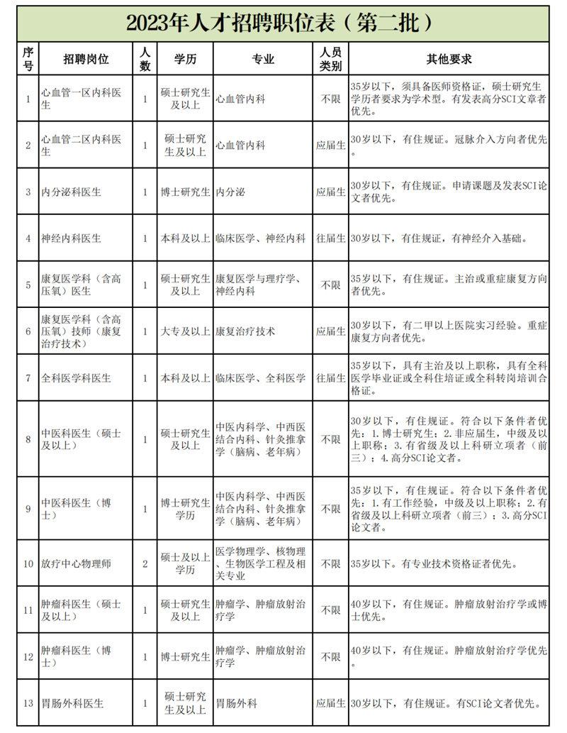 (1)第一类博士学科骨干:给予购房补贴安家费80万元(含市、区政府补贴),科研启动资金30万元;前3年每月给予租房补贴最高3500元,年薪50万或以上,作为科主任后备培养人选。