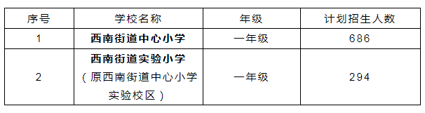 根据上级招生工作会议精神,结合学校实际,现就2023年秋季西南街道中心小学、西南街道实验小学一年级招生工作公告如下: