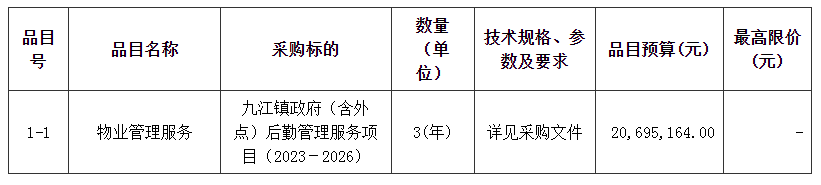 概述:九江镇政府(含外点)后勤管理服务项目(2023-2026)招标项目的潜在投标人应在广东省政府采购网https://gdgpo.czt.gd.gov.cn/获取招标文件......