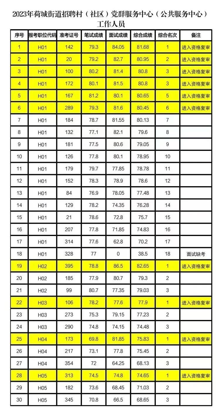 根据2023年荷城街道招聘村(社区)党群服务中心(公共服务中心)工作人员工作安排,现将考生总成绩以及进入资格复审人员有关事项公告如下: