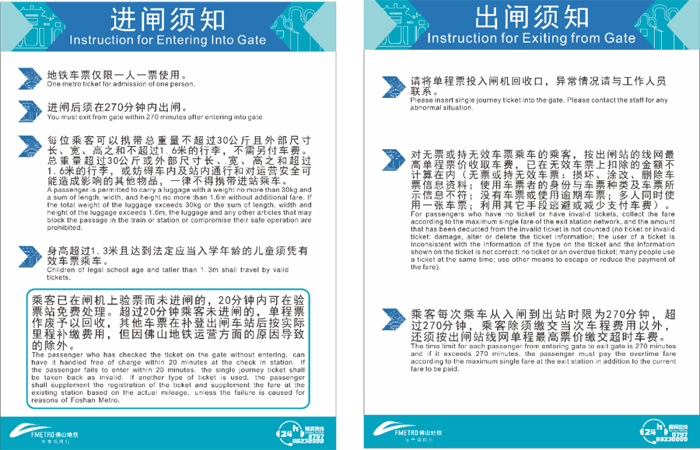 佛山地铁:乘车时限为270分钟