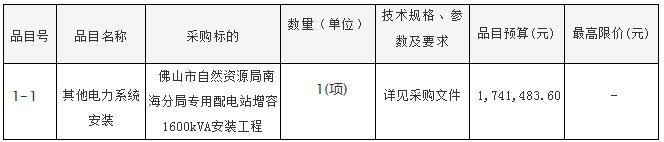 合同包1(佛山市自然资源局南海分局专用配电站增容1600kVA安装工程):