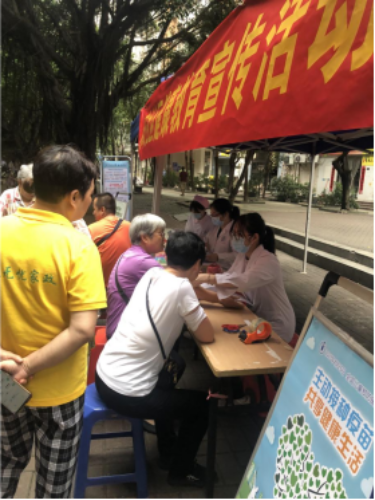 为了加强社区居民对健康的关注,增强居民自我保护、关爱生命、关注健康的意识,做到对疾病的早发现、早预防、早治疗。普及居民医疗保健知识,使居民拥有更优良的自身素养和心理健康状态,和安社区于2023年4月24日上午在辖内金花苑广场联合金花街道公共卫生委员会、金花街道社区卫生服务中心开展和安社区健康教育宣传义诊活动。