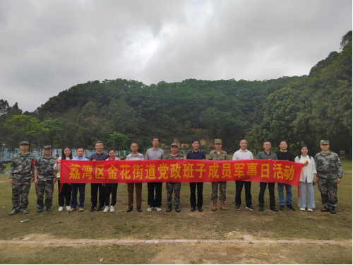4月23日上午,在荔湾区人武部大力支持和指导下,金花街道在广州市天河综合训练基地,组织全体党政领导班子成员过军事日活动,街道党工委委员和正科级以上职级职务领导参加,街道党工委委员、武装部部长李凌波同志全程协调安排。