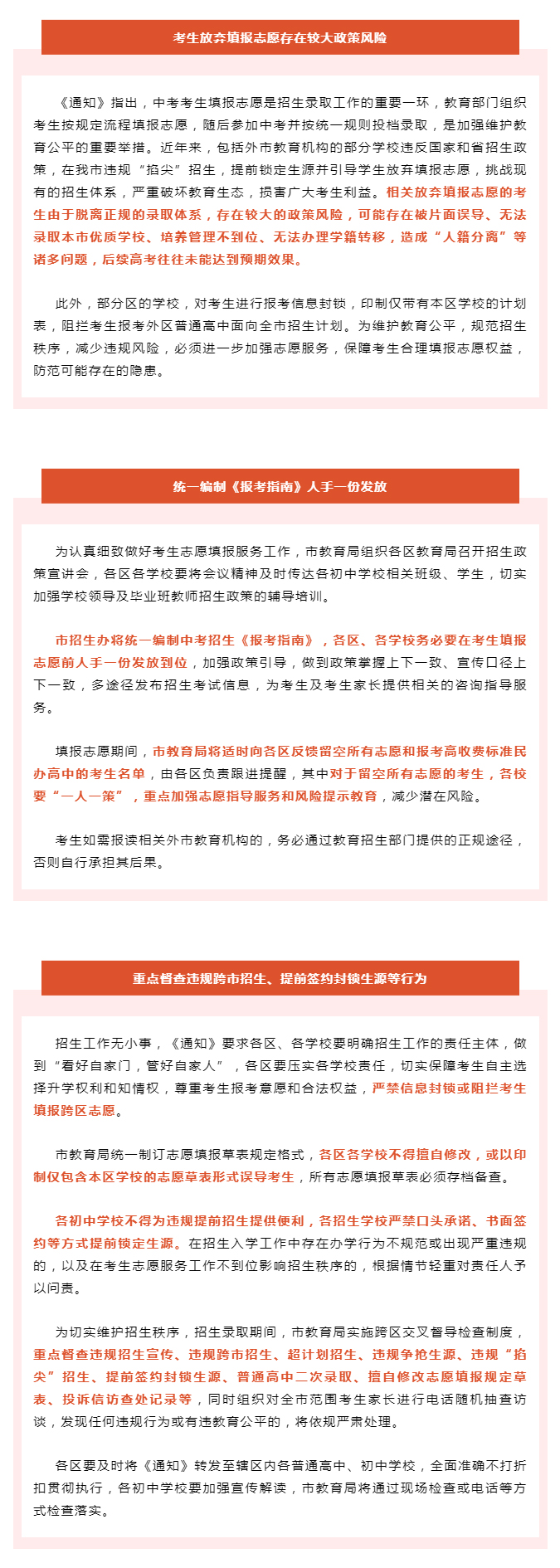 为进一步全面规范高中阶段学校招生考试秩序,加强考生志愿填报服务,日前,佛山市教育局发布《关于进一步加强考生志愿填报服务规范招生秩序的通知》(以下简称《通知》)。