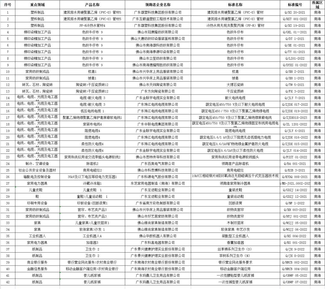 实施标准引领战略后,南海的标准化工作也结出累累硕果:截至目前,全区累计主导参与各级标准制修订1612项(其中国际标准15项);全区新增813家企业在企业产品标准信息服务平台声明公开1991项标准,数量在全国县级区域中位列前茅,居全市第一。39家企业61项产品通过“佛山标准”产品评价,领先全市。新增获批立项的省、市级标准化示范试点项13个,数量居全市前列。