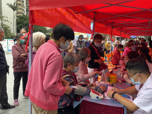 (图:居民有序接受公益义诊及预防接种知识科普)