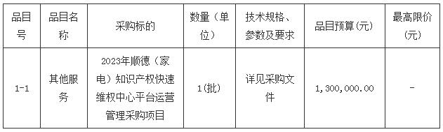 项目名称:2023年顺德(家电)知识产权快速维权中心平台运营管理采购项目