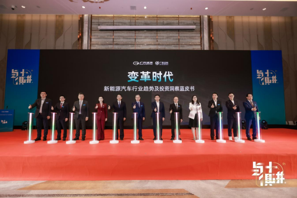 广东省工业和信息化厅曲晓杰副厅长、广州市地方金融监督管理局邱亿通局长、南沙区人民政府马洁红副区长、广发证券葛长伟党委书记、广汽集团冯兴亚总经理以及集团下属企业相关负责同志进行了《变革时代:新能源汽车行业趋势及投资洞察蓝皮书》发布仪式。
