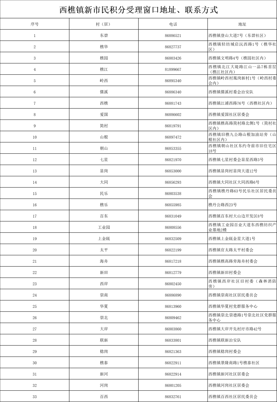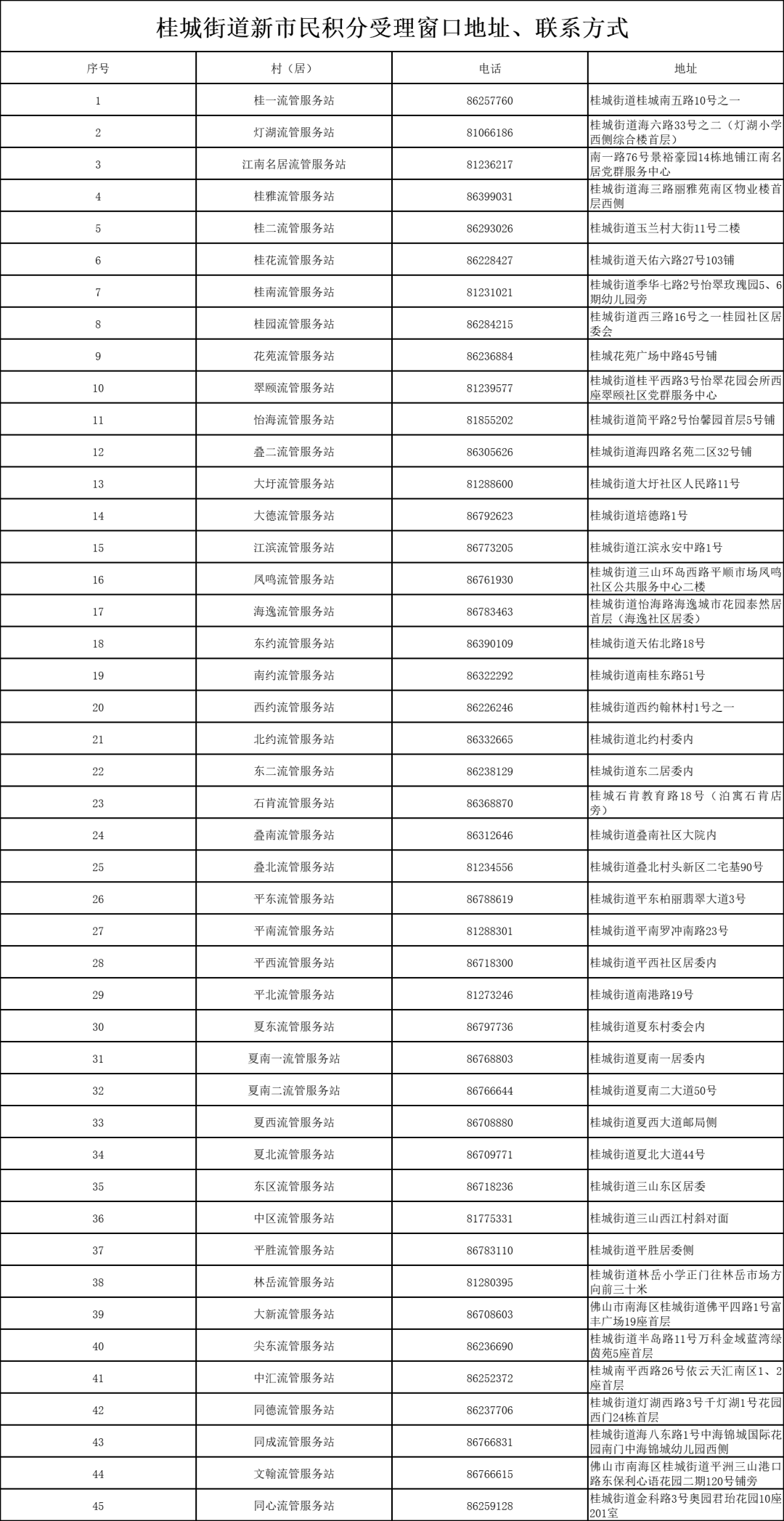 七、桂城街道、 九江镇、西樵镇新市民积分受理窗口地址、联系方式