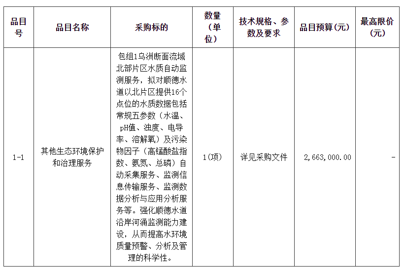 乌洲断面相关流域第三方水质自动监测服务项目招标公告