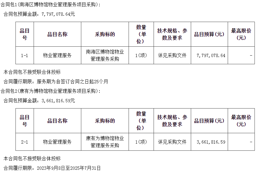 南海区博物馆物业管理服务项目采购招标项目的潜在投标人应在广东省政府采购网https://gdgpo.czt.gd.gov.cn/获取招标文件,并于 2023年05月23日 09时00分 (北京时间)前递交投标文件。