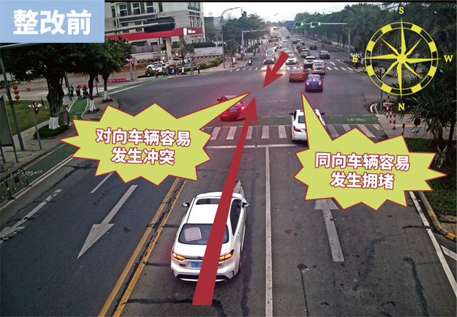 交通标识信号优化要与时俱进。经研判,发现该路段除1条左转车道外,还有3条直行车道和1条直行左转混合车道。于是,区城管局和交警支队决定调整车道,将直行左转混合车道改为单一左转车道,保证群众早高峰出行顺畅。经整改,有效改善了左转车道拥堵的问题,早晚上下学高峰期的车辆通行率提高30%。