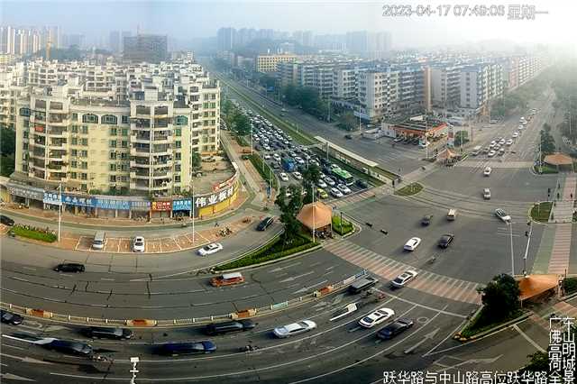 高明区荷城街道沿江路与荷香路的南北双方向交汇口整改后。