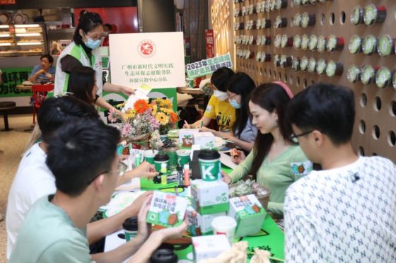 本次活动在二沙岛肯德基环保主题店举行,生态环保志愿者们在手工老师的教学带领下,使用店内废弃的食物包装进行改造,一起变废为宝,制作循环咖啡杯套,传递可持续发展理念。此外,志愿者现场利用魔方不同面开展低碳绘画,并拼成彰显个性“循环”态度的艺术装置,用创意、有趣的方式参与生态环保,把生态环保理念融入到日常生活,拥抱可持续的生活方式。生态环保志愿者还现场派发了宣传资料,加大宣传力度。
