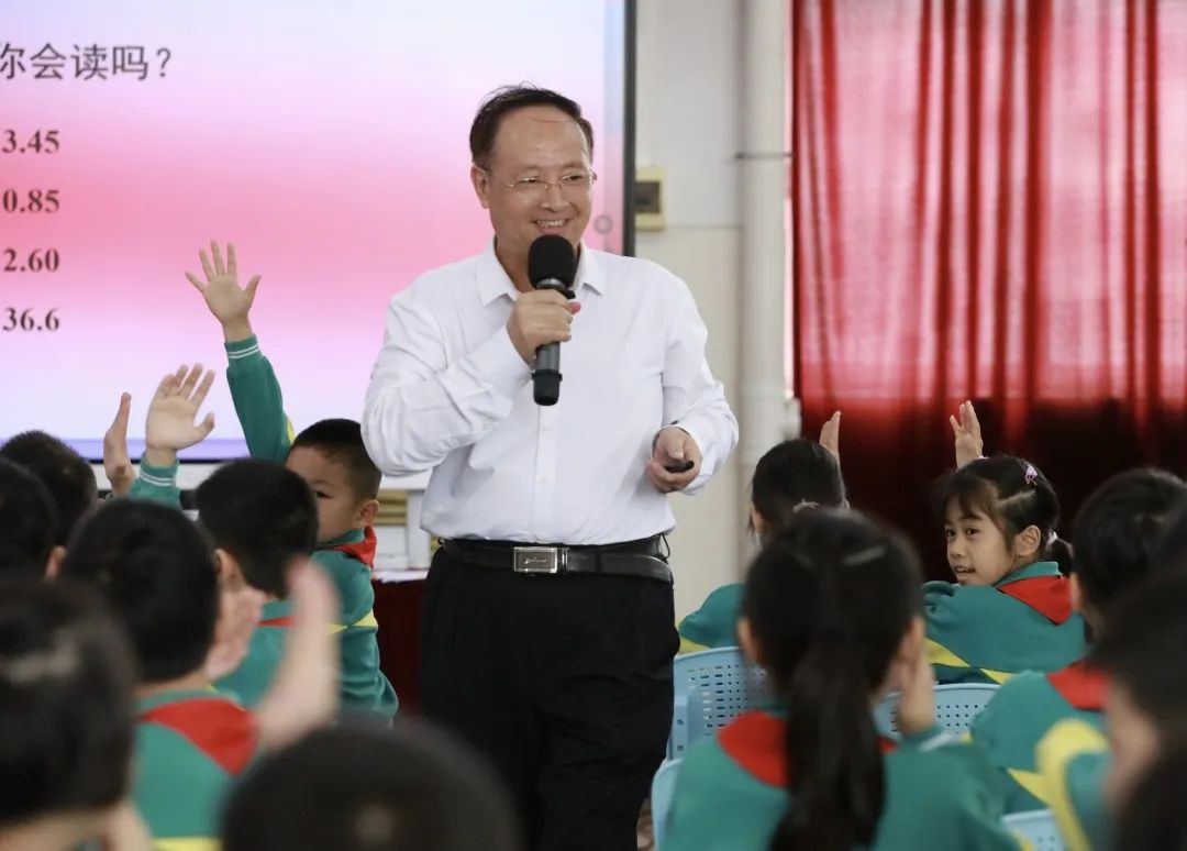 小学数学教研员伍挚将课堂教学与生活实际紧密结合,其和蔼、大气而简练的课堂风格,深深吸引着三年级的孩子。课后,孩子们都开心地说道“伍爷爷的课太好玩了,我学到了很多知识。”