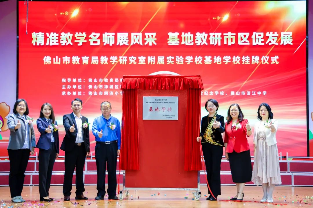 在致辞环节中,钱运涛、刘湘、林美芳、董蔚等分别从打造佛山市“五好教育”、推进禅城区“三优”建设、推动区域基础教育高质量发展的高度,强调了建设佛山市教育局教学研究室附属实验学校基地学校的目的与意义。他们充分肯定了汾江中学与3所基地校在“市区镇校共建”教研项目前期的成效,同时也进一步明确联合教研共建方向;希望通过本次设立片区基地校的全新探索,进一步推进建设“市区镇校共建”教研体系,促进附属实验学校与基地学校从共建共赢迈向“共优”,共同打造佛山“五好教育”新形态示范校。