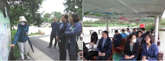 在海珠国家湿地公园,考察团参观了绿心湖、花溪、福寿果廊、都市田园、高畦深沟老树林、古荫帆影、花洲古渡等节点,了解海珠湿地保护建设与生态环境保护修复情况。