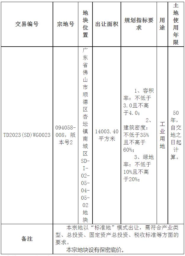 五、有意参与竞买者可于2023年4月27日后登录网上交易系统下载TD2023(SD)WG0023 地块的《佛山市顺德区国有建设用地使用权网上挂牌出让文件》。