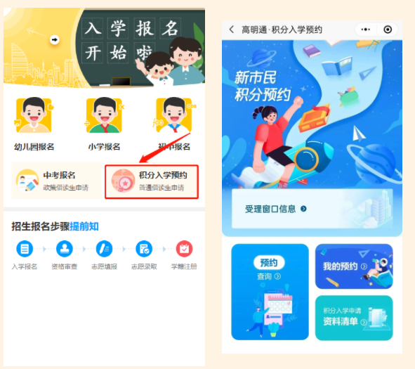 一、提前预约:积分入学业务实行网上预约办理模式。从5月3日起,新市民(法定监护人)可通过“高明通”微信小程序进行预约。