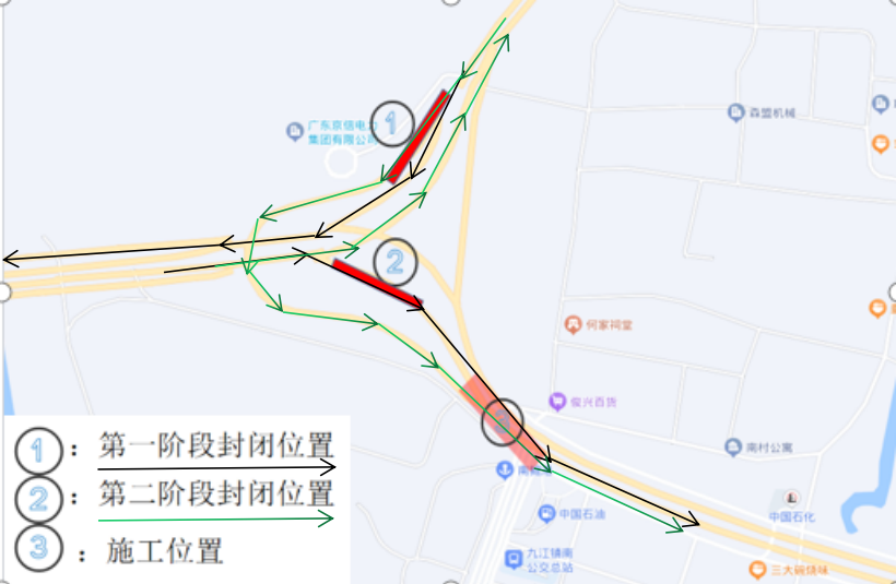 根据龙翔大桥工程施工需要,经有关部门批准,需对龙高路南沙村路段进行封闭施工。施工封闭时间、位置、行车指引如下:
