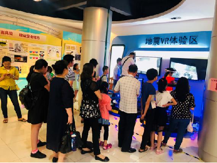 展馆包括展板、实物展览、试震互动区、网络互动区、全球地震带模型、地震虚拟仿真逃生训练体验区、防震减灾服务产品区、播放室、基于VR的避震逃生体验系统等功能区,充分运用了现代化展示手段,将知识性、趣味性和互动性有机融为一体。