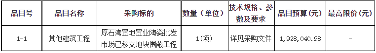 合同包1(原石湾置地置业陶瓷批发市场已移交地块围蔽工程):