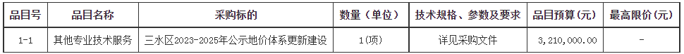 三水区2023-2025年公示地价体系更新建设项目招标公告