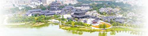 曲艺园主楼为三层高的阁楼,上层屋面为十字脊的歇山顶,下层屋面为四坡顶。在总体风格及尺度比例上学习汉唐“如鸟斯革,如翚斯飞”的气韵。